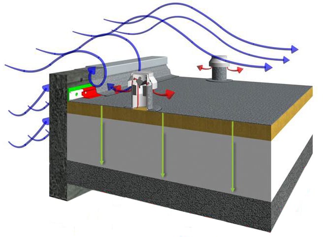 Our vacuum roof system is also perfect for buildings with high humidity, such as swimming pool centres, breweries, etc. If moisture becomes trapped in the roof structure, the vacuum roof system can help to vent it.